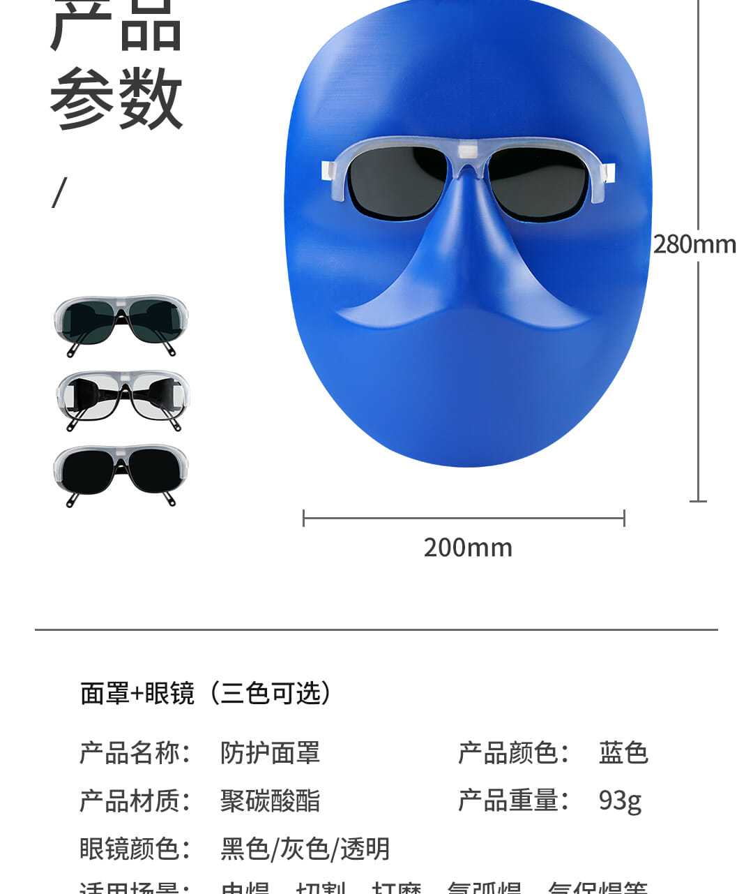 standard welding protective mask face mask welding cap head-mounted cowhide elastic band lightweight argon arc welding glasses boutique PC mask +transparent glasses +elastic band