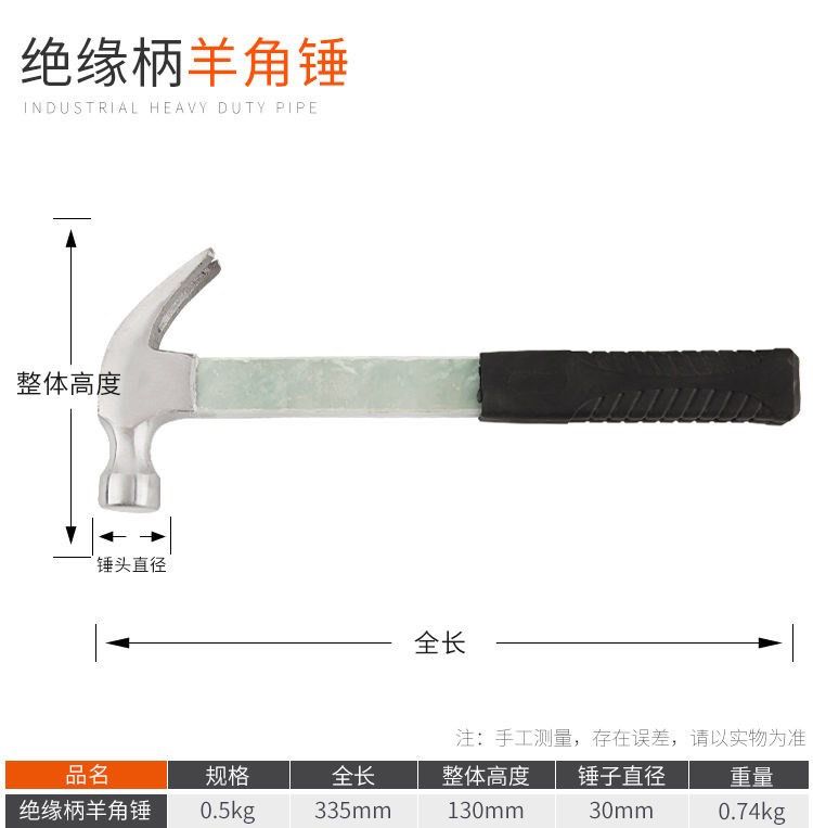 钉锤收到了质量很好是全碳钢的而且带双钉槽锤把是绝缘的非常结实耐用价格也很低物流很快服务也很满意以后有需要还会再来选购。