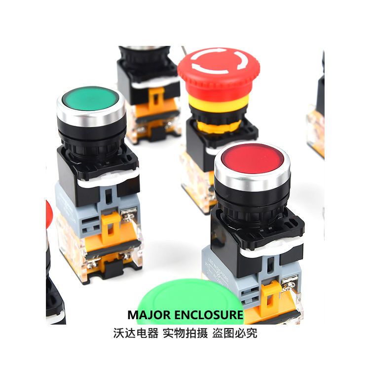 push button switch self-reset la38-11Bn self-locking one open one closed start stop round inching switch button self-resetting (inching) silver dot +red (one open, one closed)