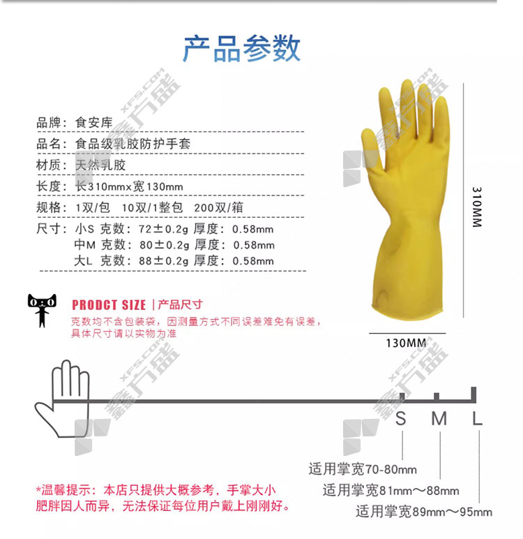 food safety library food grade thickened pure latex gloves 21087 L 310mm yellow 88g 21087/S/310mm/yellow /70g