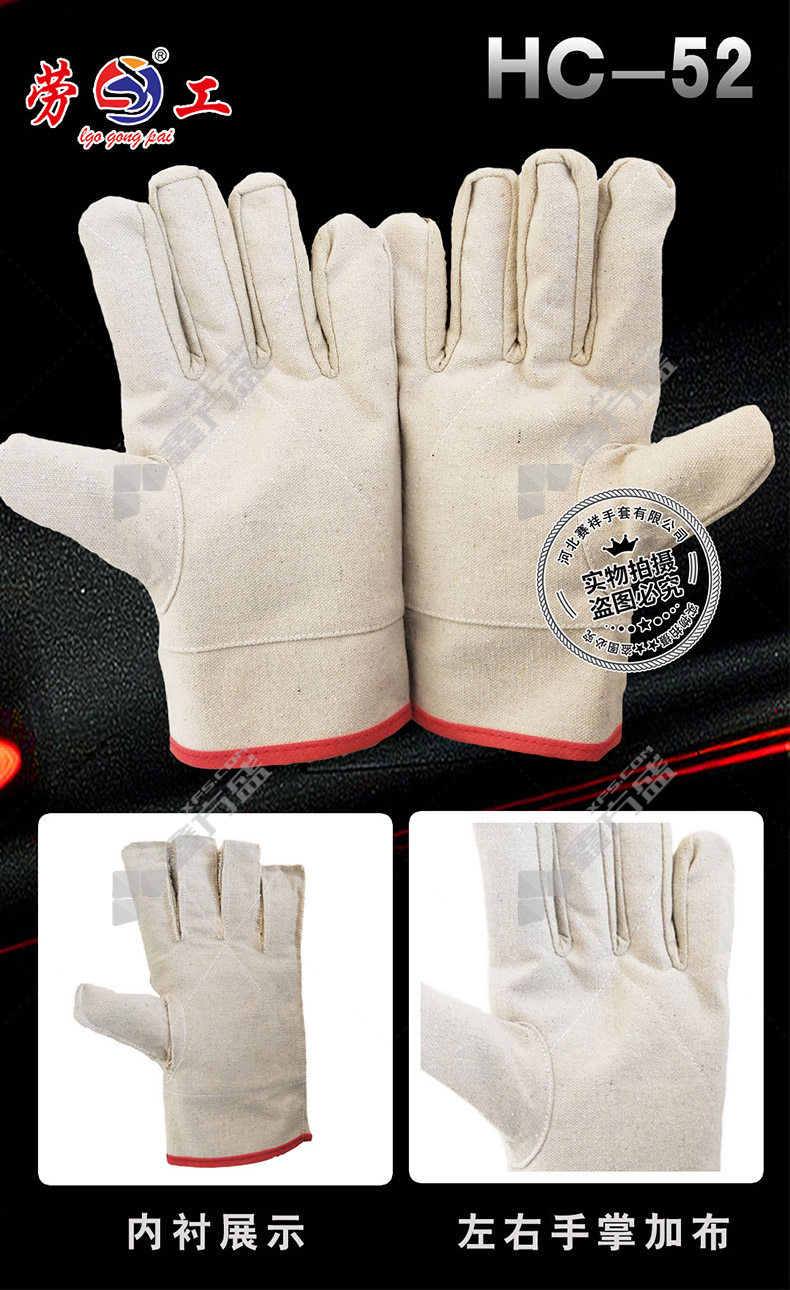 labor double-layer canvas construction site protective welding labor protection gloves HC-52 one size fits all, white, no specifications