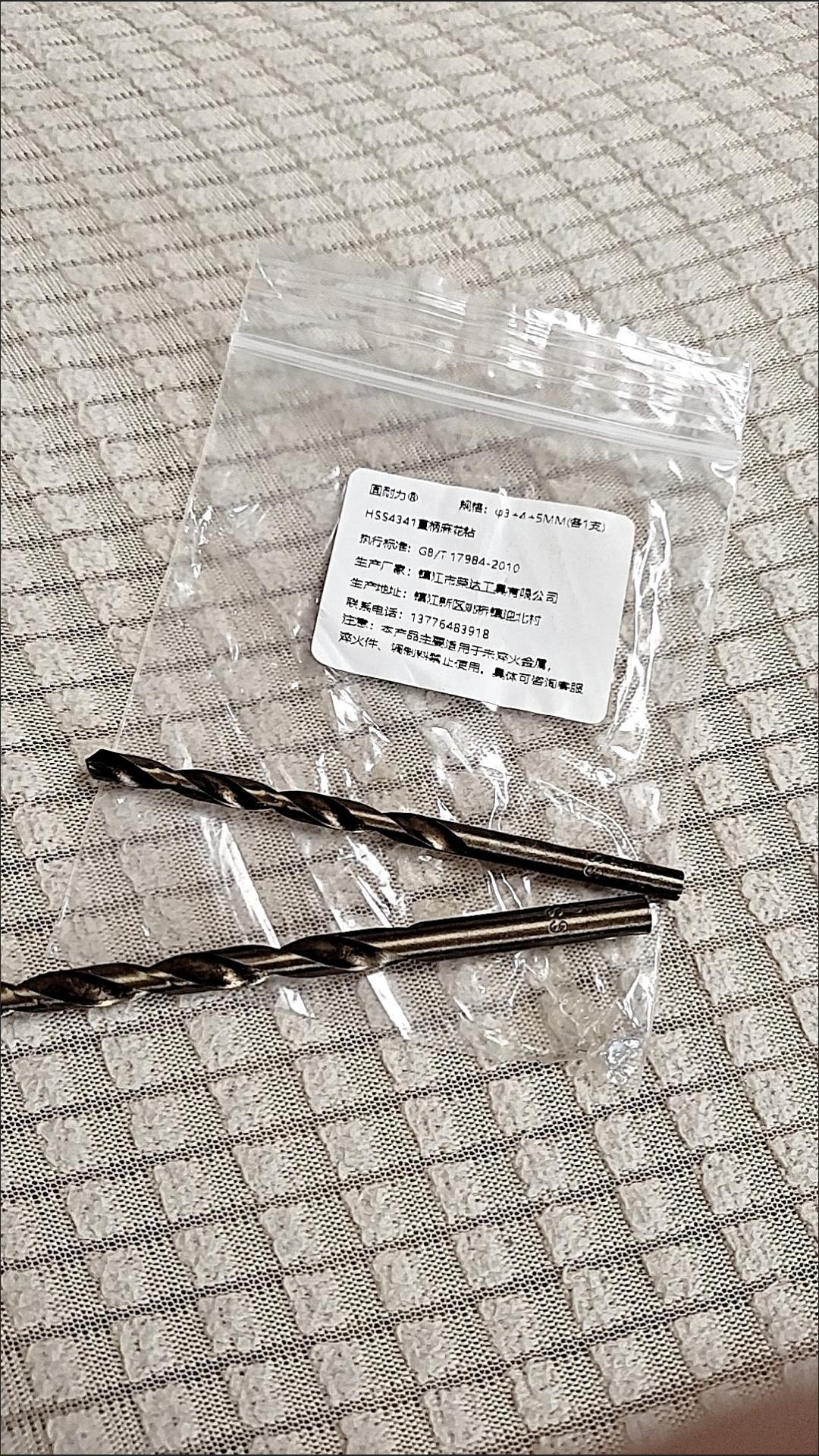 发货,运输,到达通知都好。平安抵达手中。此麻花钻(应为高速)含钴,所以可钻不锈钢(不锈钢粘性大,难钻。)。用∅5的钻了一下,不锈钢厚大于1.2mm,(见附图)可顺利钻透。手上没乳化剂一类润滑剂,试用家中常有的液体点了一滴,效果可以。整体评价:好评。